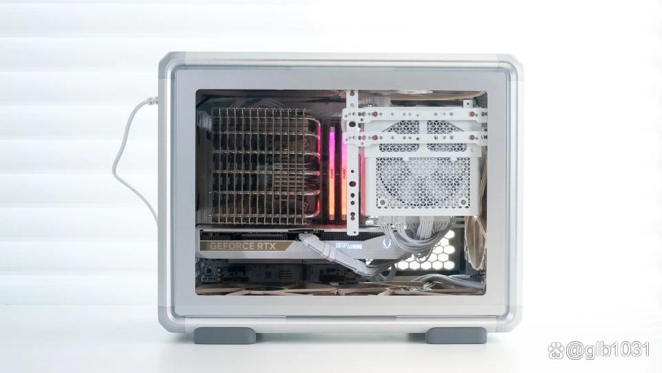 不过在我最后把电源通过支架安装在机箱正面后,其实整体除了不是那么美观,但是在散热风道上也是相对合理的。