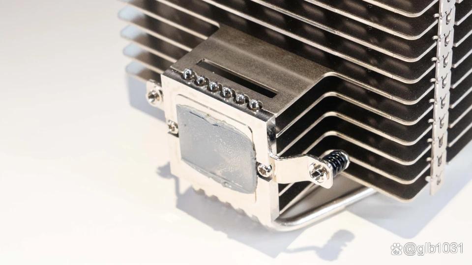 6热管弧形水平排列,上下都有大量扰流孔,整个底座也有散热片,辅助均热以及支撑。