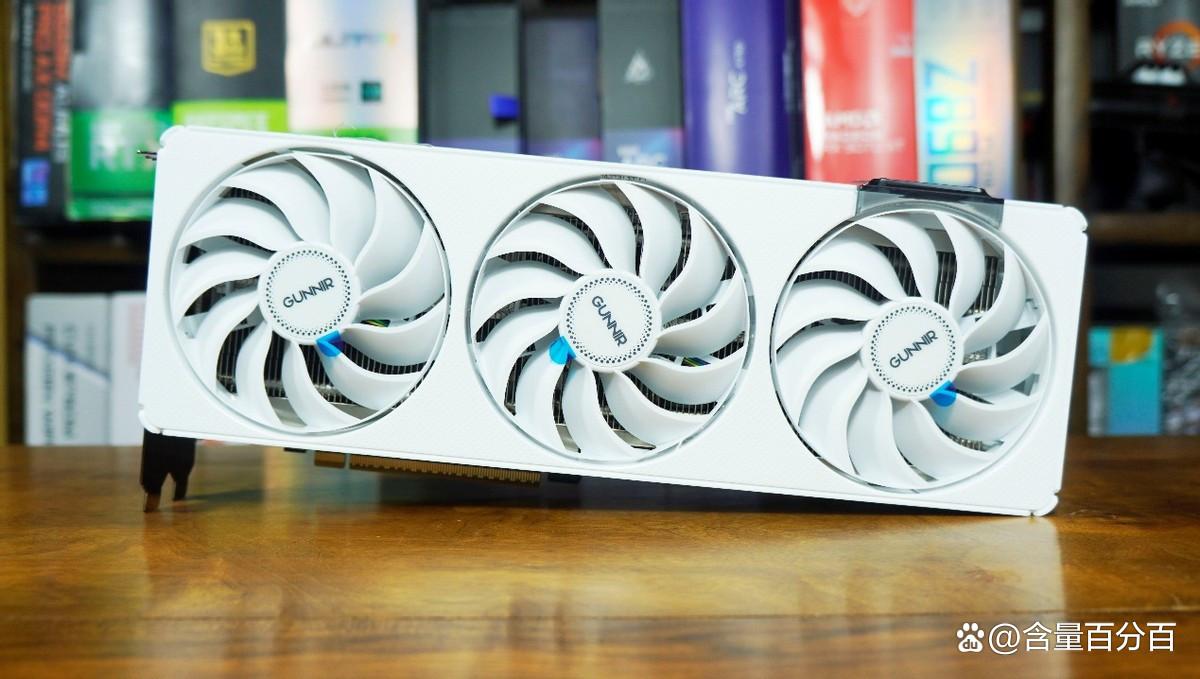 显卡是蓝戟B570 Photon 10GB,有白色和黑色配色可选。蓝戟B570 Photon 10G体积为300×118×52毫米(不含挡板),沿用了NEO美学设计,自带3把采用11扇叶全新幽刃散热设计的风扇。供电方面,蓝戟B570 Photon 10GB供电相数是8相+4相,供电接口采用了传统单一8PIN设计。