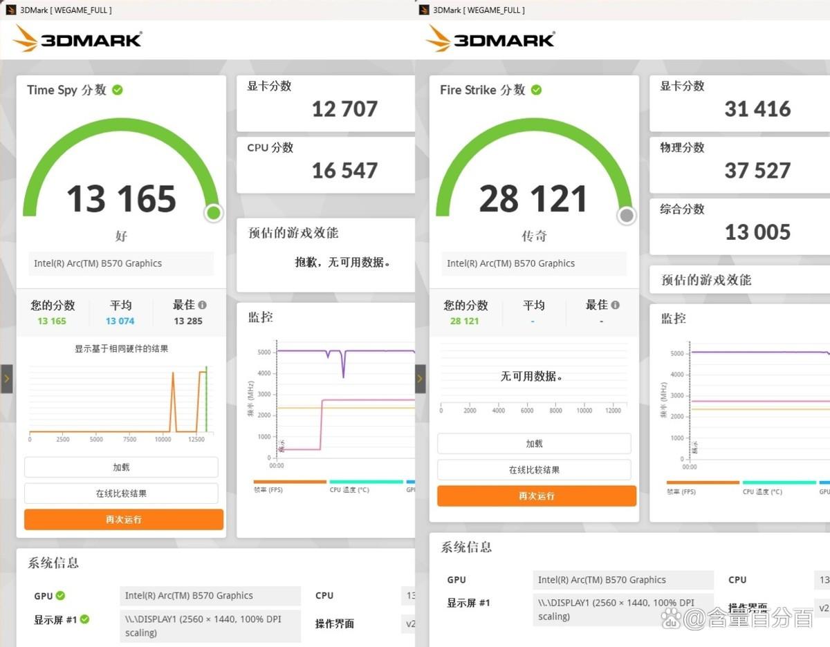 酷睿i5-13600KF在3DMark Time Spy下的成绩为13165,其中CPU分数为16547;在3DMark Fire Strike下的成绩为28121,其中物理分数为37527。