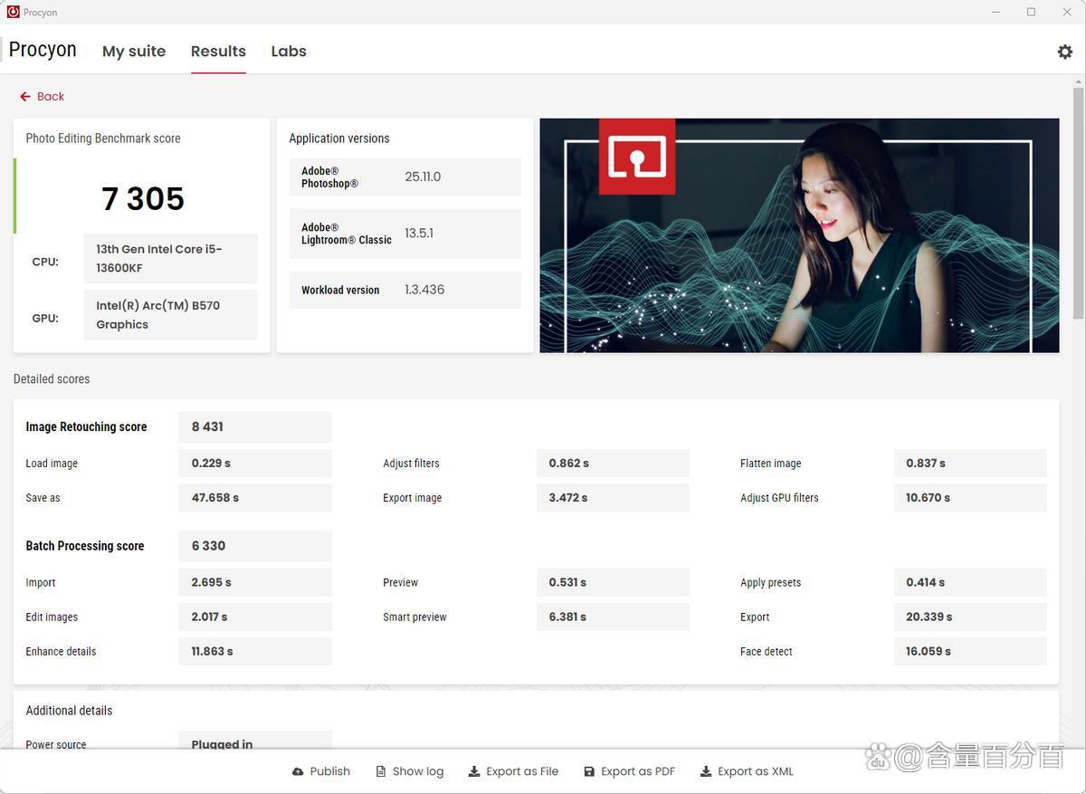 主机在Procyon图片编辑功能下的得分为7305,其中Image Retouching得分为8431,Batch Processing得分为6330。