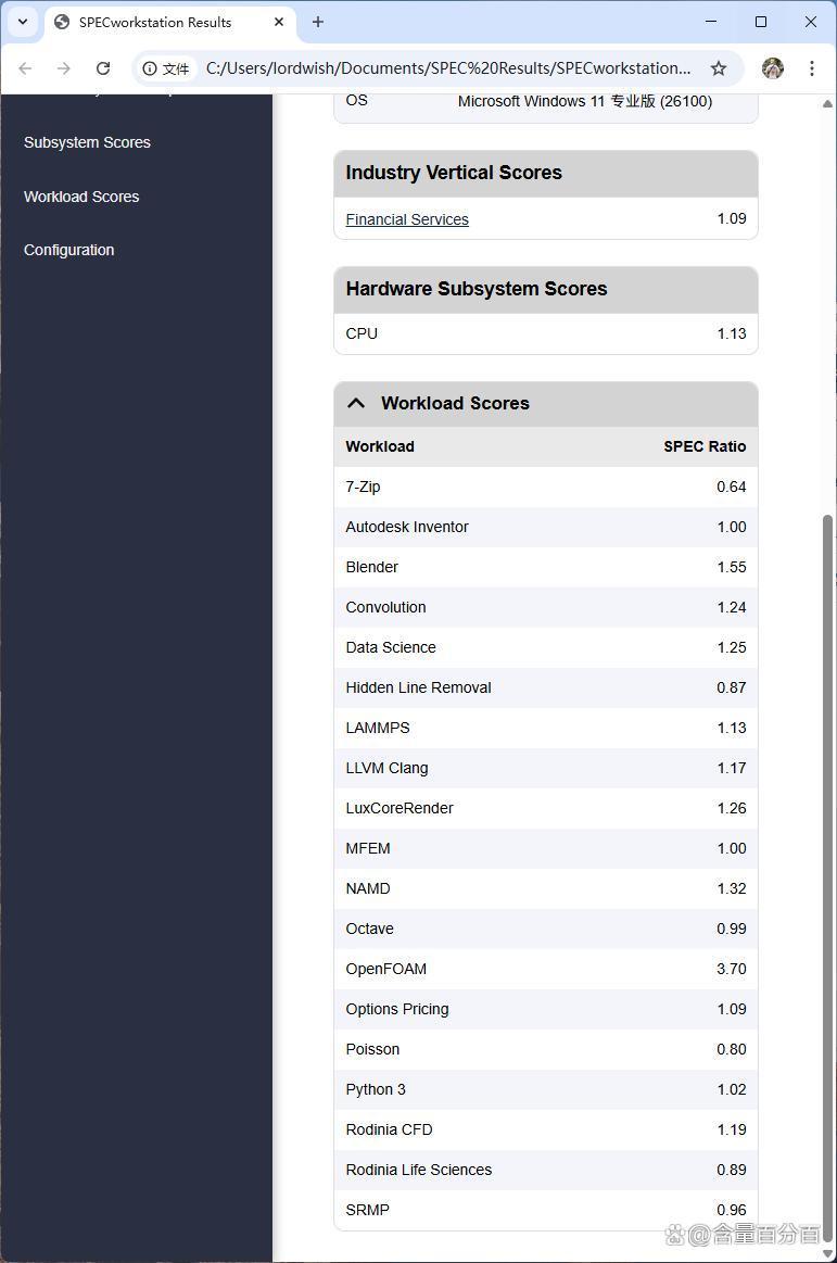 搭配SPECworkstation4的测试结果如下,各位可以自行查找。其中Financial Services对应结果为1.09,CPU对应结果为1.13。