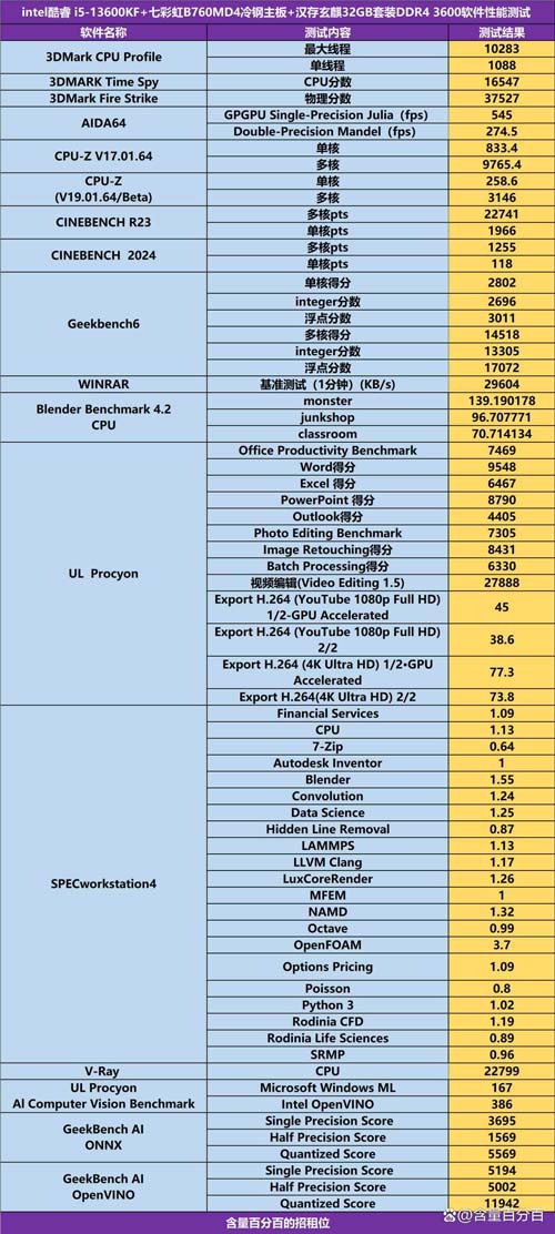 前面我晒了自己在9月份组装的英特尔酷睿i5-13600KF与七彩虹B760MD4冷钢主机,有网友私信问会不会出性能测试的部分,想看看这套板U套装搭载32GB套装DDR4 3600内存条的综合性能表现如何,今天我这里就简单做一些测试供各位参考。