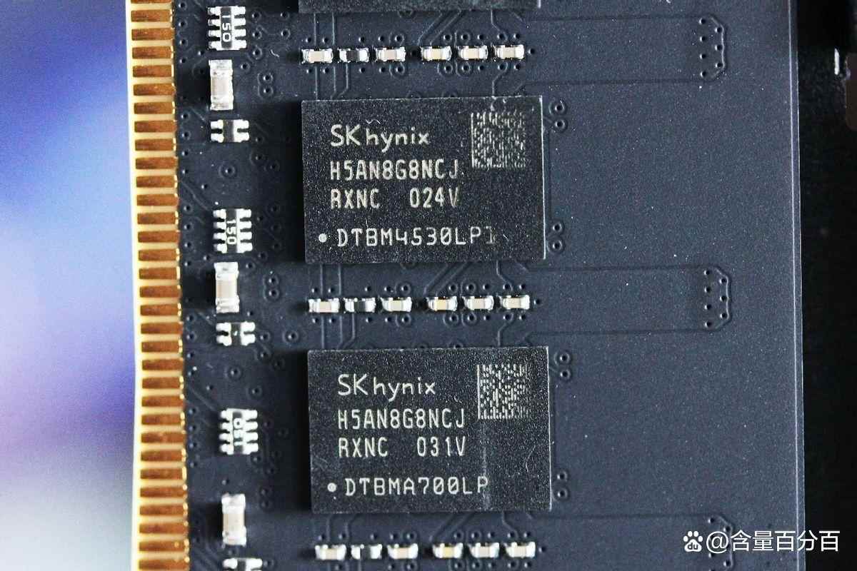 汉存玄麒DDR4 3600内存条所搭载的是海力士CJR颗粒,时序为CL16-20-20-42。汉存玄麒DDR4 3600内存条采用的是1mm厚度铝制合金散热马甲设计,搭配全新高密度3M散热胶来辅助提升散热性能。顶部采用的是凹字形设计,顶部有两处凸起的部分增大了散热马甲面积,顶部有开孔来辅助提升被动散热性能。
