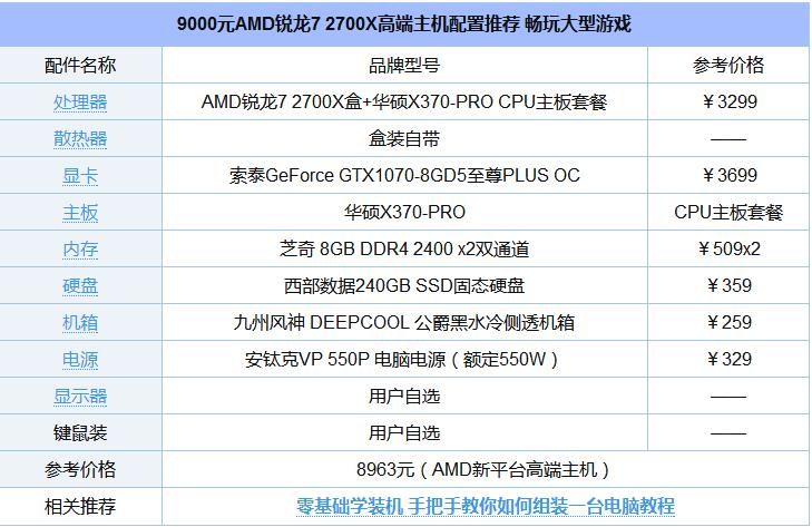 9000元AMD锐龙7 2700X高端主机配置推荐 畅玩大型游戏