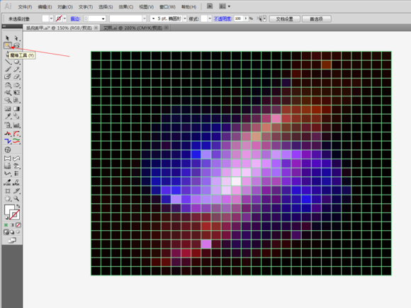 4、完了之后就是这样的效果,把他们全部选中编组之后,最好冲星空图上移到一边,这里其实马赛克效果并没有把那张星空位图打碎,只是给它照了张马赛克相片。
