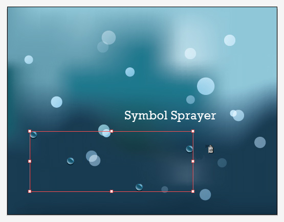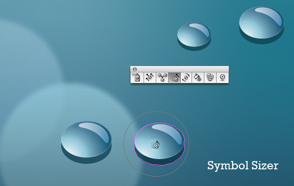 现在选择符号缩放器工具。随机改变水滴符号的大小。按住Alt键,可以缩小图案。你的结果是要得到大小不一样的水滴.然后用移动工具略微调整.