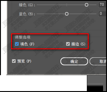 这里分填充和描边。如果形状中描边与填充都有颜色的,我们可以选择要调整的是填充还是描边。