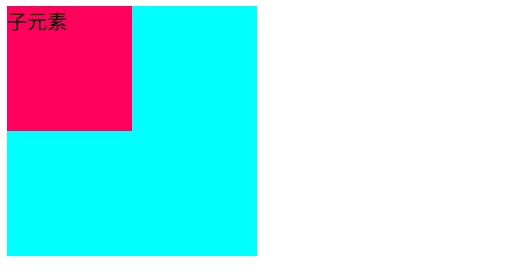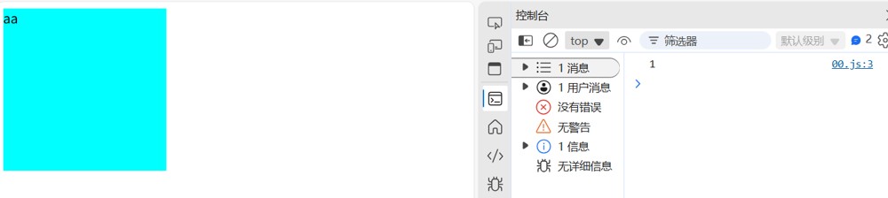 <!DOCTYPE html> <html lang="en"> <head> <meta charset="UTF-8"> <meta name="viewport" content="width=device-width, initial-scale=1.0"> <title>Document</title> </head> <style> .aa{ width:200px; height:200px; background-color: aqua; } .bb{ width:100px; height:100px; background-color:rgb(255, 0, 93); } </style> <body> <div class="aa"> <div class="bb">子元素</div> </div> </body> <script type="text/javascript" src="./00.js"></script> </html>