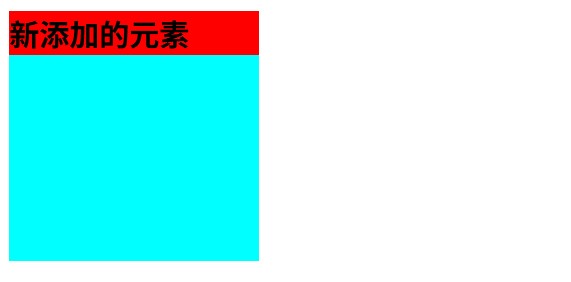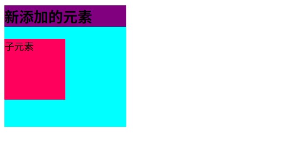 var obj = document.querySelector(".aa") var bb = document.querySelector(".bb") var newNode = document.createElement("h2") console.log(newNode) newNode.innerText = "新添加的元素" newNode.className = "xixi" newNode.style.background = "purple" obj.insertBefore(newNode,bb)