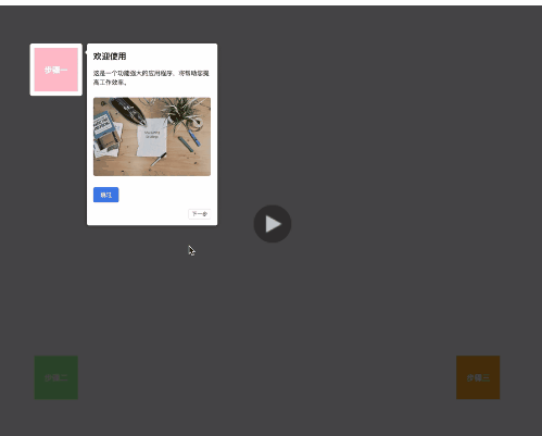 import React, { useEffect, useRef } from 'react' import { driver } from 'driver.js' import "driver.js/dist/driver.css"; import './test.less' const Driver = () => { const driverRef = useRef(null); // 添加全局函数供弹出框使用 window.handleGuideClick = () => { driverRef.current.destroy(); }; const WELCOME_IMAGE = 'https://images.unsplash.com/photo-1533750349088-cd871a92f312?ixlib=rb-4.0.3&ixid=M3wxMjA3fDB8MHxwaG90by1wYWdlfHx8fGVufDB8fHx8fA%3D%3D&auto=format&fit=crop&w=1000&q=80'; const guide = () => { if (driverRef.current) { driverRef.current.destroy(); } driverRef.current = driver({ allowClose: false, // 是否有关闭按钮 popoverClass: 'custom-driver-popover', // 添加自定义class showProgress: false, // 首先确保配置中关闭进度显示 steps: [{ element: ".step1-pop", popover: { popoverClass:'step1', title: "欢迎使用", description: ` <div class="custom-popover-content"> <p>这是一个功能强大的应用程序,将帮助您提高工作效率。</p> <img src="${WELCOME_IMAGE}" alt="欢迎" /> <div class="button-container"> <button class="custom-button" onclick="handleGuideClick()">跳过</button> </div> </div>`, showButtons: ["next"], nextBtnText: "下一步", onNext: () => { console.log("正在从第一步移动到第二步"); return true; // 返回false可阻止继续 } } }, { element: ".step2-pop", popover: { popoverClass:'step2', description:'step2', // showButtons: ["next", "previous"], nextBtnText: "下一步", prevBtnText: "上一步", } }, { element: ".step3-pop", popover: { title: "完成", description: "done", nextBtnText: "关闭", prevBtnText: "上一步" } }] }) driverRef.current.drive() } useEffect(()=>{ guide() },[]) return ( <div> <div className='step1-pop'>步骤一</div> <div className='step2-pop'>步骤二</div> <div className='step3-pop'>步骤三</div> </div> ) } export default Driver