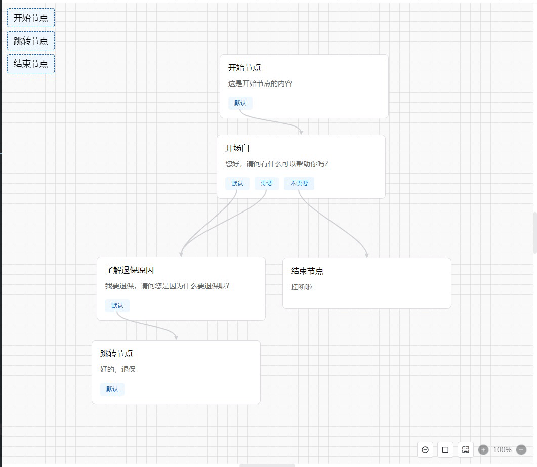 基于div+svg实现的轻量级SOP流程图组件,专为智能质检、智能外呼、AI陪练等流程化场景设计。纯原生实现,无第三方依赖,提供高度可定制的节点与连线功能。话不多说,先贴图。