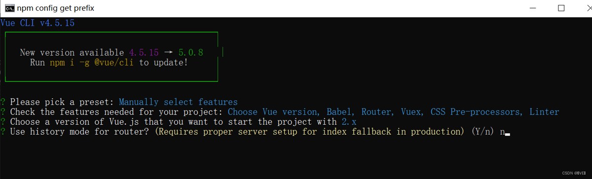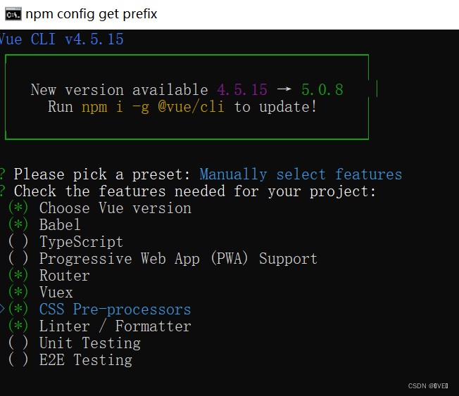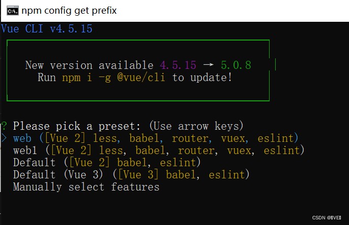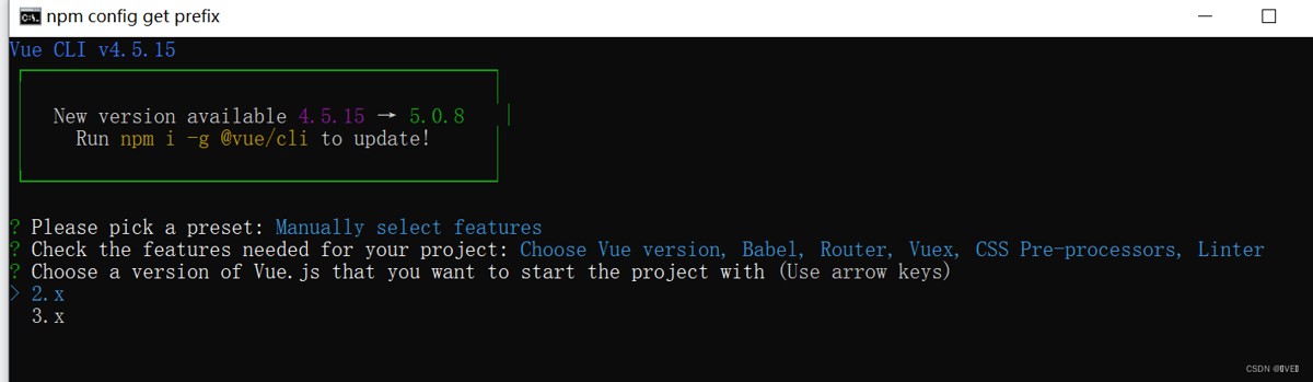 -- 切换到想要创建的目录,使用命令 vue create 项目名