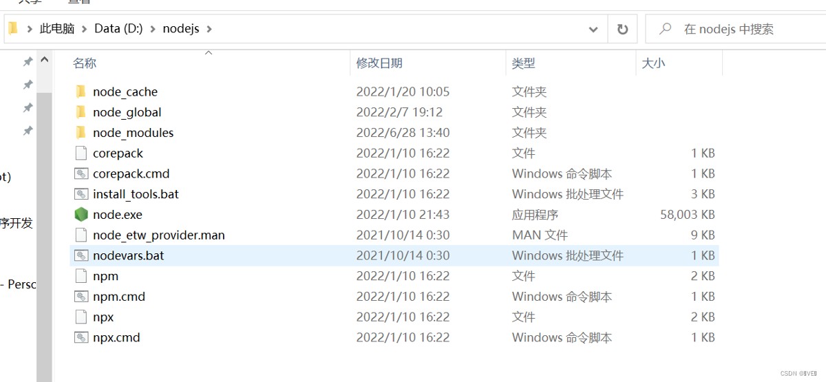 - 下载完成后查看一下,然后留意一下nodejs所在的目录