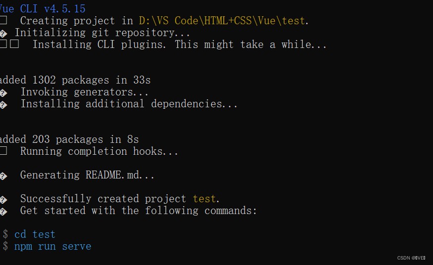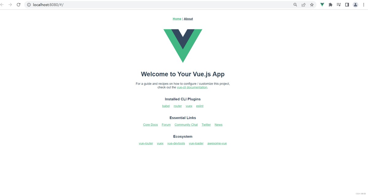 进入项目 --> ctrl+~ 打开控制台 -->npm run serve,执行浏览器显示该页面,项目完全创建好了!!