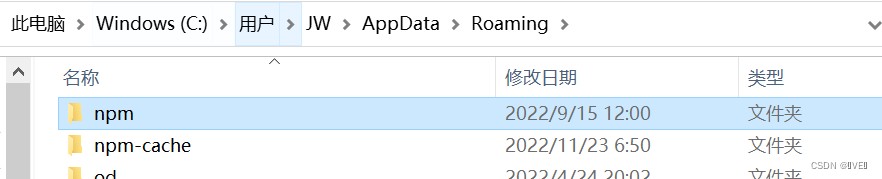 - 在执行,例如npm install webpack -g等命令全局安装的时候,默认会将模块安装在C:\Users\用户名\AppData\Roaming路径下的npm和npm_cache中,不方便管理且占用C盘空间,如下图所示: