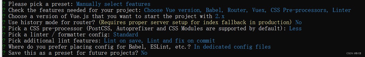 -- 生成配置信息:保存到独立文件中(选它);保存到package.json文件中
