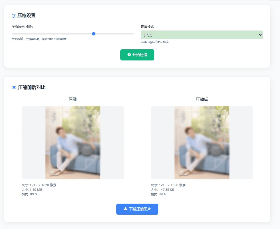 这篇文章主要为大家详细介绍了如何使用HTML开发一个浏览器端照片压缩工具,支持上传图片,调整压缩质量,实时预览效果并下载,需要的小伙伴可以了解下