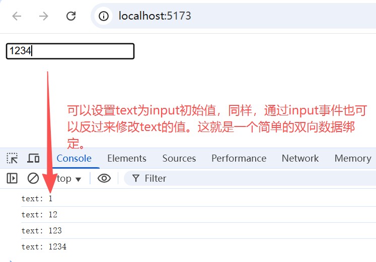 <template> <input :value="text" @input="event => handleInput(event.target.value)"> </template> <script setup> import { ref } from 'vue'; let text = ref('') function handleInput(newText) { text.value = newText; console.log('text:', text.value); // 用于测试数据是否发生了改变 } </script> <style scoped> </style>