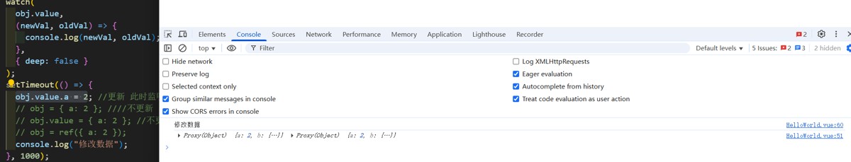 修改赋值操作为 obj.value.a = 2 这个会不会呢