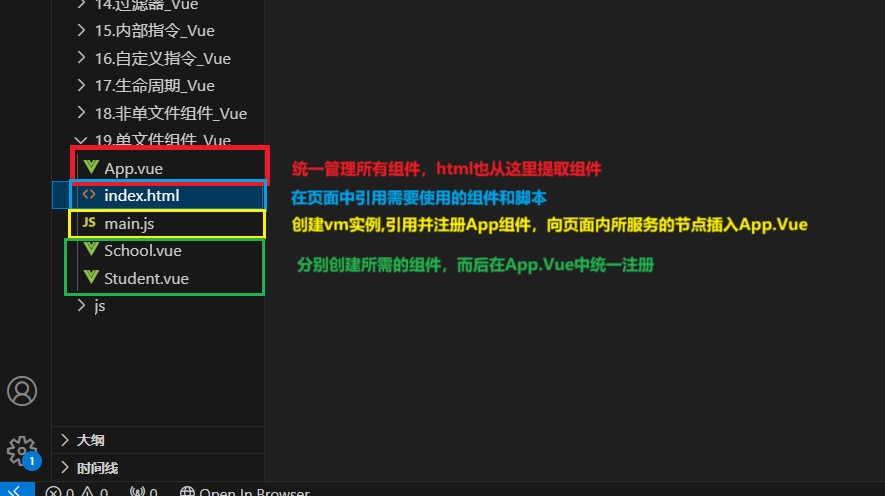 前面五点都使用非单文件组件进行举例,而在这一大点将简单描述单文件组件的结构与编写。注意: