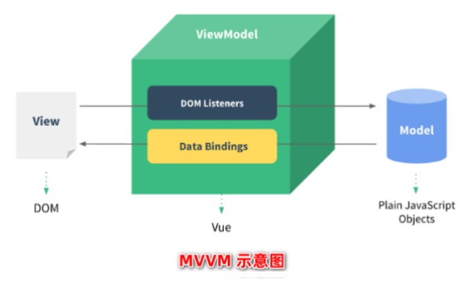 MVVM 中的 VM 要做的事情就是把 DOM 操作完全封装起来,通过数据绑定,可以将 View 和 ViewModel 关联在一起: