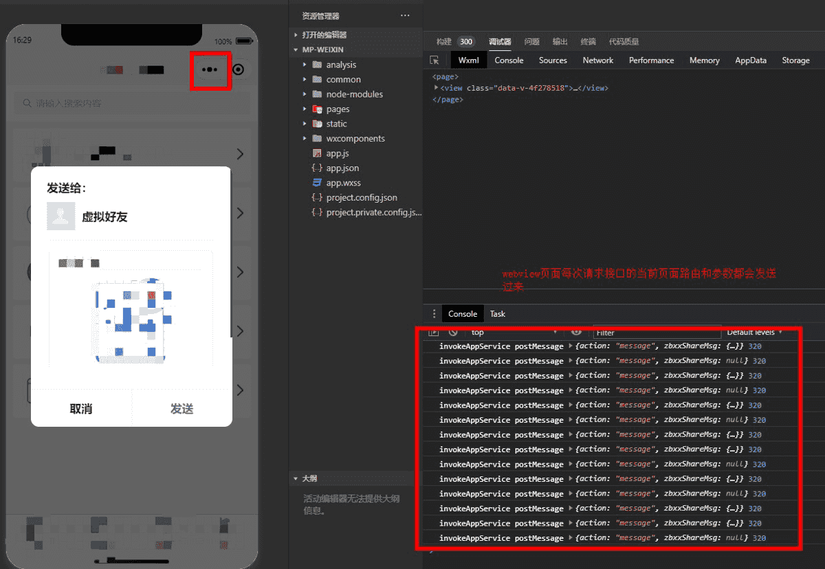 发送的消息如下,webview网页每次发送消息,开发者工具都可以看到