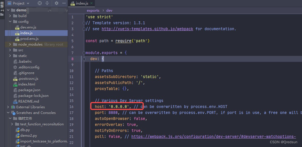 在Vue2开发阶段,为了让局域网内的小伙伴访问本地项目,需要修改项目的配置文件`demo/config/index.js`,将调试host从默认的`127.0.0.1`改为`0.0.0.0`,这样其他设备通过你的IP地址就可以访问到本地项目了