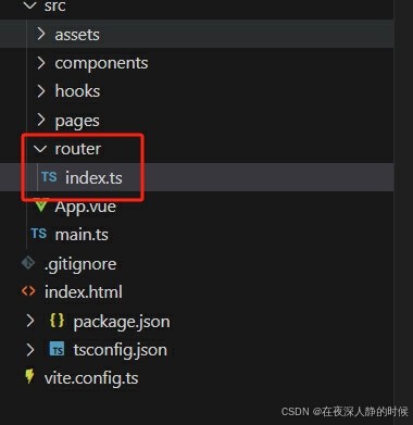 创建router文件夹,创建index.ts文件,这里是工程化创建方式,不一定非要这样命名。
