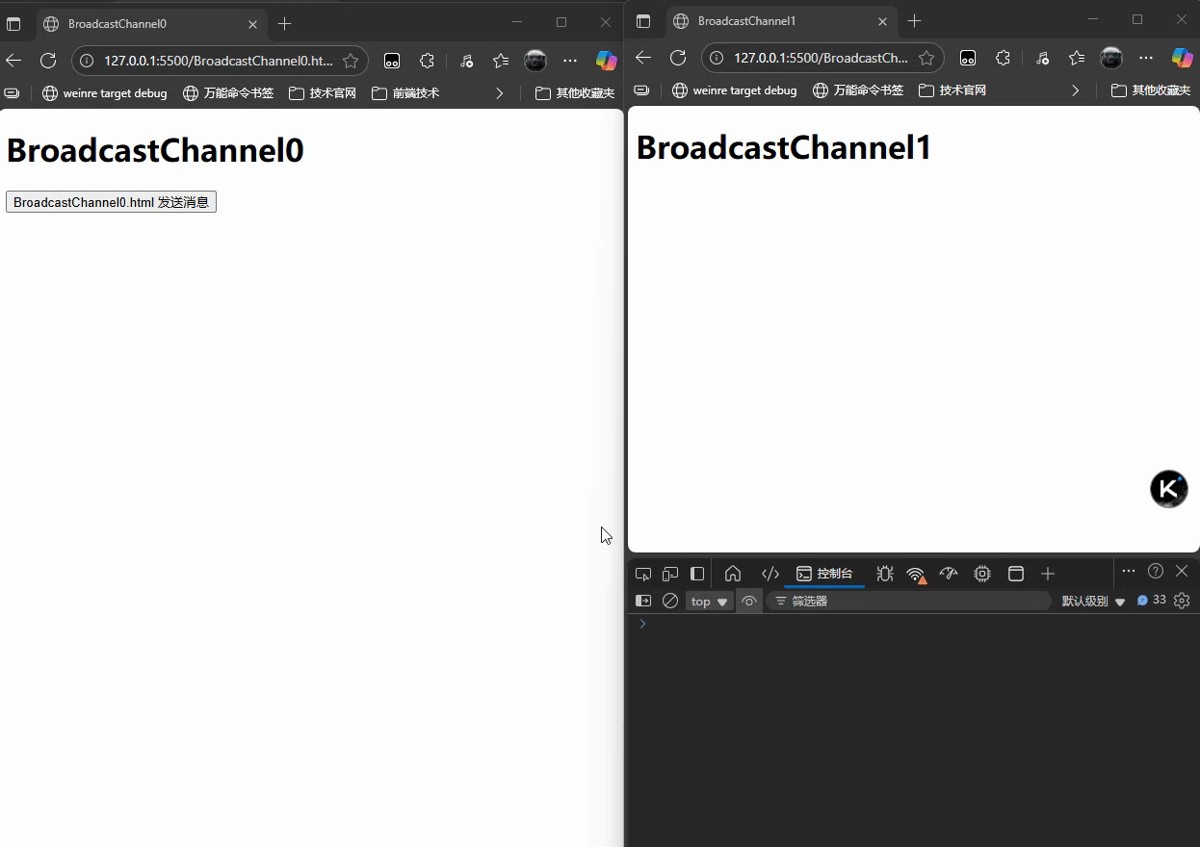 - 要通信的标签记得都初始化BroadcastChannel,一定记得使用相同的名称
