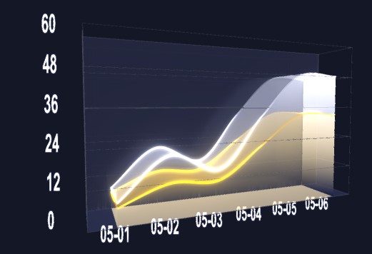 将 y 轴真实数据值转换为三维坐标,其中最重要的是根据真实值获取 y 轴最大值,然后根据 y 轴真实数据最大值和 y 轴分段数计算出 y 轴转换比例。