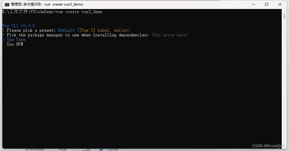3、选择yarn作为包管理器