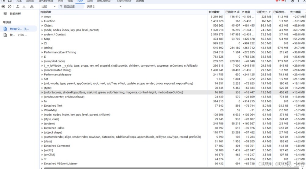 - 再次 Take heap snapshot(快照2)