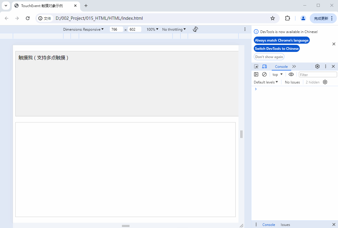 <div class="touchBox">触摸我 ( 支持多点触摸 ) </div>