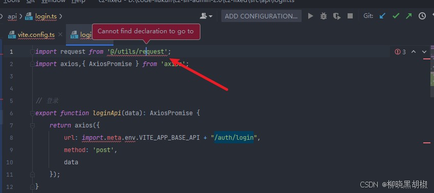 新增文件tsconfig.json,添加 baseUrl 和 paths 的配置,以告诉 TypeScript 和 WebStorm 如何解析路径别名