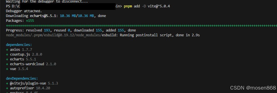 出现该界面即配置成功,可执行 npm run dev命令启动文件