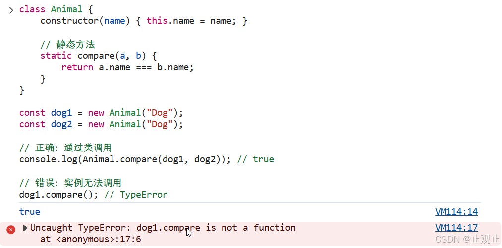 注意:类的方法之间不需要逗号分隔,加了逗号会报错!
