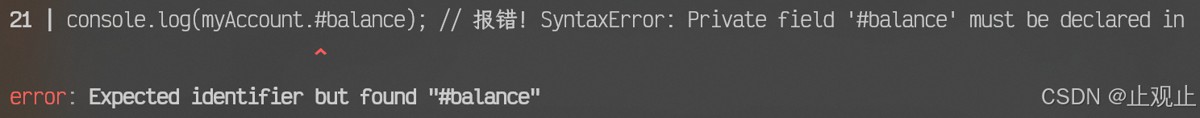 // console.log(myAccount.#balance); // 报错!SyntaxError: Private field '#balance' must be declared in an enclosing class