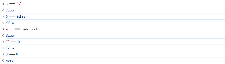 5 == "5" // true (字符串"5"转换为数字5) 0 == false // true (false转换为数字0) null == undefined // true "" == 0 // true
