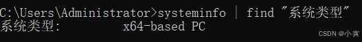第一步cmd输入:systeminfo | find "System Type"或者systeminfo | find "系统类型"并回车,查看处理器架构信息,这一步是为了查看本系统适合安装那个版本的docker,检测类型为: x64-based PC,所以选择下载Download for Windows-AMD64