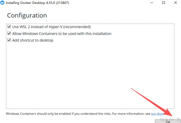 Allow Windows Containers to be used with this installation:允许在此安装中使用 Windows 容器。
