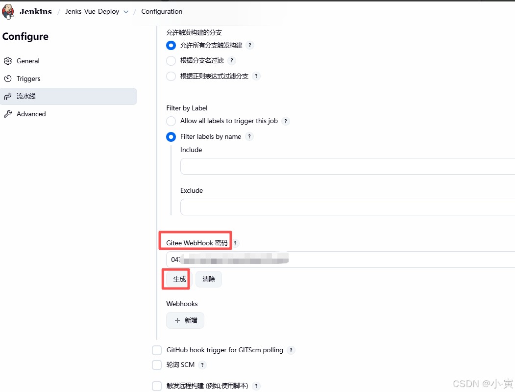 ***WebHook密码在哪找呢:在jenkins的general中点击生成