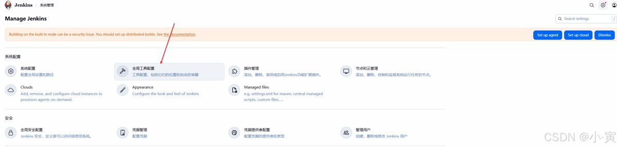 第一步:关联vue和jenkins,在jenkins首页点击设置