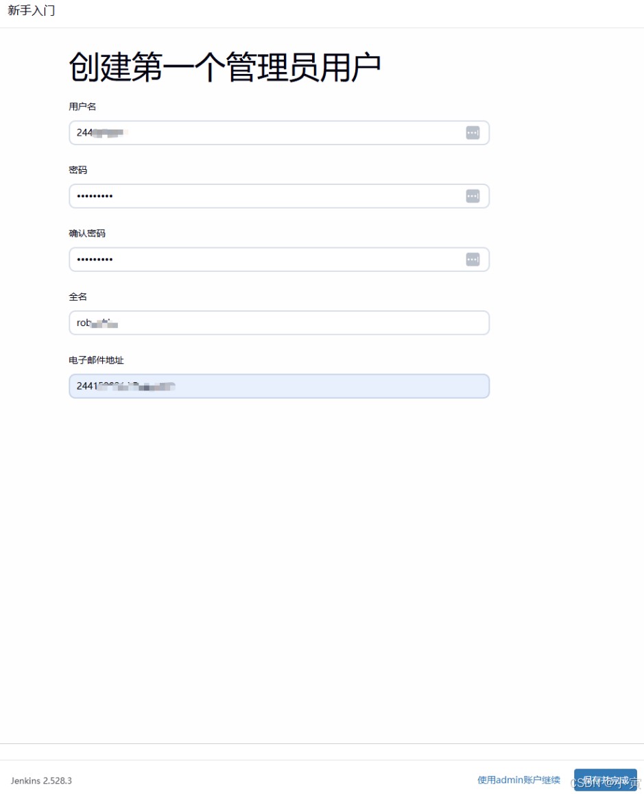 第一步:复制密码粘贴到管理员密码中点击继续,打开jenkins