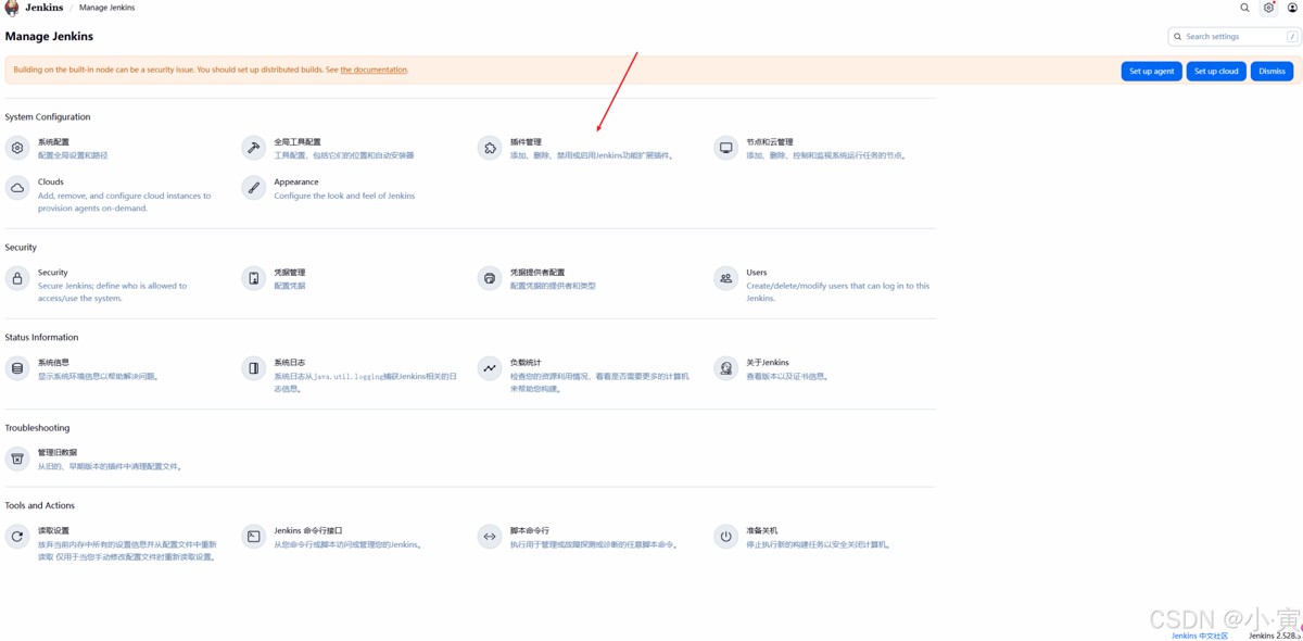 第八步:基础插件安装,右上角点击设置或者浏览器直接输入:http://localhost:8080/manage/,目的是打开安装插件的页面