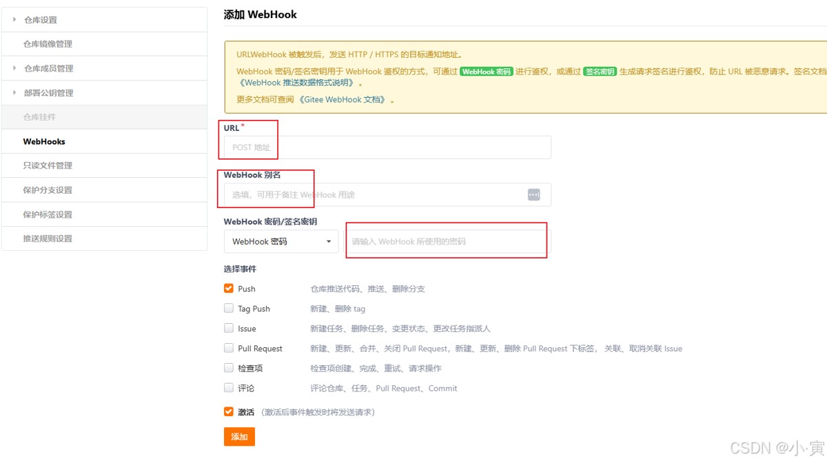 点击添加webHook