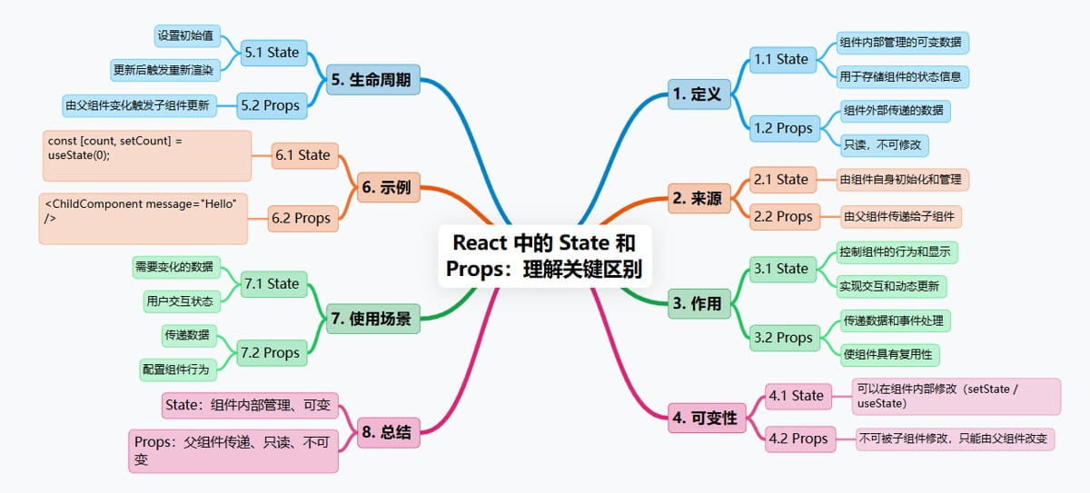 state 和 props 是 React 中两个核心概念,它们共同构成了组件的数据管理机制。props 是组件的输入,用于父子组件之间的数据传递,是只读的;而 state 是组件的内部状态,用于管理组件内部的可变数据,是可变的。通过合理使用 state 和 props,可以实现高效、清晰的数据管理。希望本文能帮助你更好地理解和应用 React 中的 state 和 props。如果你有任何问题或建议,欢迎随时交流!
