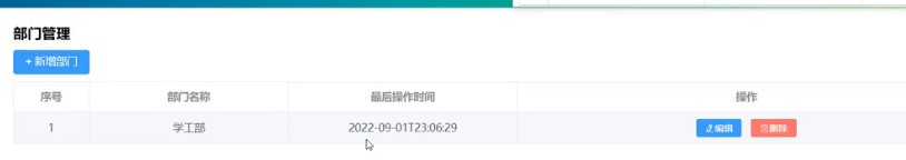 这里我们再美化一下对话框的标题同时呢,我们要为新增部门添加一个事件,在新增部门这个按钮上添加然后对他进行说明当点击它的时候我们变为ture