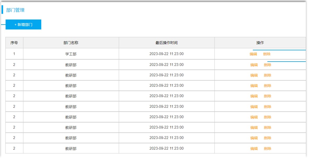 部门管理组件 src/views/dept/index.vue 具体的页面布局代码如下: