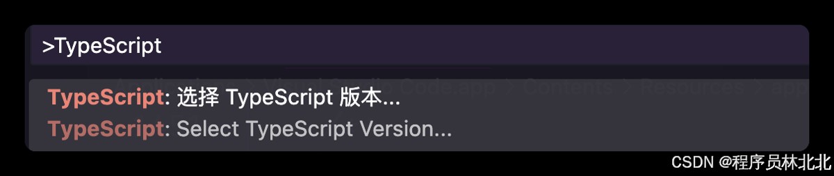 在VS Code中使用快捷键ctrl(command) + shift + P,输入TypeScript